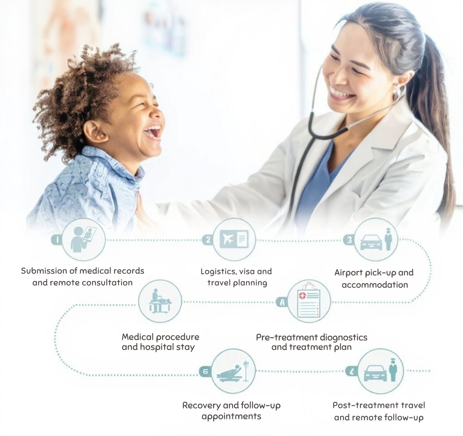We assist with medical visa processing, flight bookings, cost estimates, and document management for a smooth and hassle-free journey.